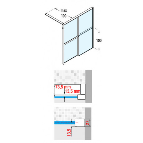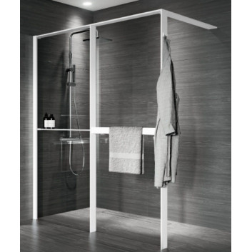 Novellini > Душевые кабины > Ścianki natryskowe wolnostojce > Kuadra > Перегородка для душа Walk-In Novellini Kaudra HWZ2 Frame, 220x200cm, вариант левосторонний, с вешалкой для полотенца i półką, profil чёрный мат.