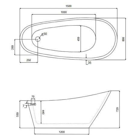 Besco > Ванные > Ванные напольные > Assos > Ванна свободностоящая Besco Melody 150x80 cm овальная белая, maskownica syfonu z переливом белая