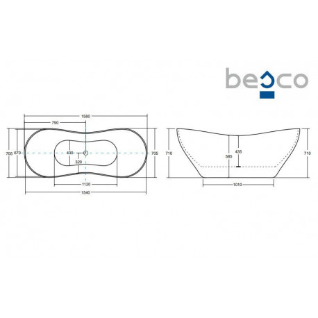 Запрос o продукте Ванна свободностоящая Besco Viya 160x70 cm, сифон klik-klak белый czyszczony od góry - белый matt: