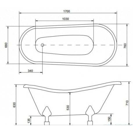 Besco > Ванные > Ванные напольные > Assos > Ванна свободностоящая овальная Besco Otylia 170x77cm Retro + ноги белый