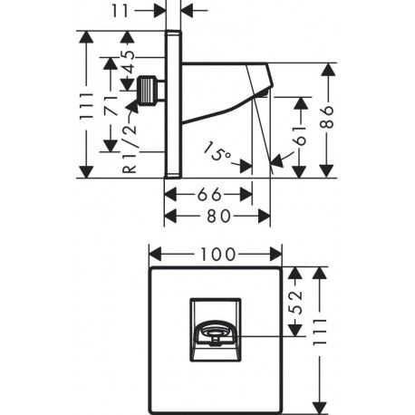 Hansgrohe > Сантехника/смесители > Верхний душ > Верхний душ > Przyłącze настенные Hansgrohe Pulsify, для душевой головки 105mm, чёрный мат.
