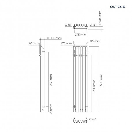 Oltens > Grzejniki > Дизайн-радиаторы > Stang > Радиатор dekoracyjny Oltens Stang 150x31,5 cm - белый