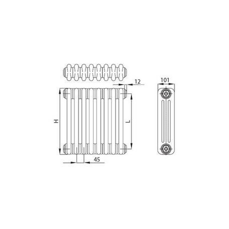 Тип радиатора: z potrójnym rzędem rurek (trzykolumnowy).