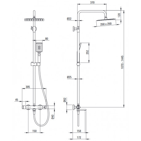 Deante > Сантехника/смесители > Душевые наборы > Сантехника (смесители) > Верхний душ со смесителем wannową термостатическим, Deante ,золото szczotkowane