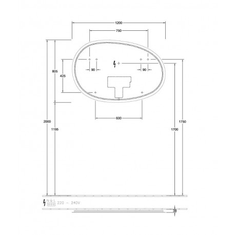 Villeroy & Boch > Мебель для ванны > Зеркала > Akcesoria łazienkowe > Зеркало подвесное Villeroy&Boch Antao со светильником, 1200x805x38 mm