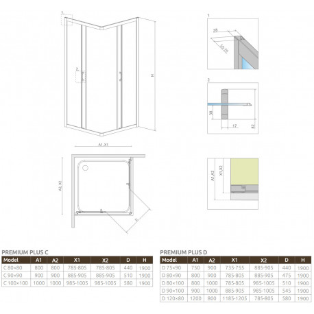 Radaway > Душевые кабины > Кабины квадратные / прямоугольные > Premium Plus > Квадратная душевая кабина Radaway Premium Plus C, 100x100cm, rozsuwana, стекло коричневые, profil хром