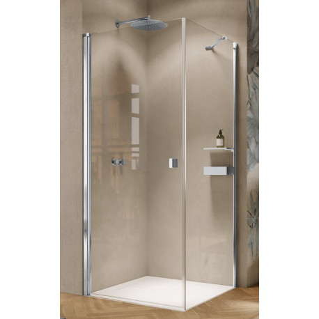 Huppe > Душевые кабины > Кабины квадратные / прямоугольные > Solva > Двери распашные Huppe Solva частично на каркас 4-угл. 80x200 cm, крепление левые, монтаж на поддоне - стекло прозрачные Anti-Plaque, профиль серебряный блестящий