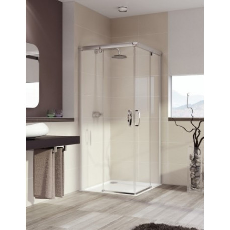 Huppe > Душевые кабины > Кабины квадратные / прямоугольные > Aura > Угловой вход Huppe Aura Elegance 4-угл., двери раздвижные 2-секционные 75x90x200 cm - стекло privatima с плёнкой Anti-Plaque, профиль серебряный благородный блеск