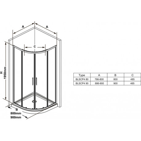 Ravak > Душевые кабины > Кабины квадратные / прямоугольные > Blix > Душевая кабина Ravak Blix Slim BLSCP4, полукруглая, 90x90x195 cm, стекло прозрачные z warstwą AntiCalc, profil хром глянцевый
