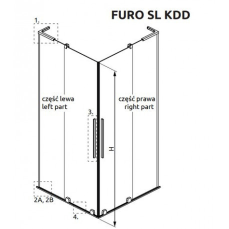 Кабина Radaway Furo SL KDD 90, часть левая - стекло бесцветное, profil GunMetal szczotkowany Серия Furo