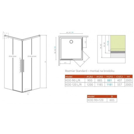 Двери кабины Radaway Idea 8 QL KDD 90 cm, часть правая - стекло бесцветное, profil хром Серия Idea