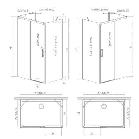 Składając zamówienie, należy podać 3 numery artykułów: двери, огорождения боковой S1 oraz огорождения боковой S2