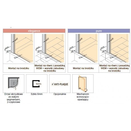 Двери распашные ze stałymi segmentami Huppe Design PURE, 1-часть, 80 cm, wys. 190 cm, серебряный мат., стекло прозрачное Серия 501 Design