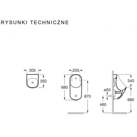 Roca > Санфаянс > Писсуары > Proton > Писсуар электронный Roca Proton (подача снизу) с электропитанием sieciowym 230V - белый