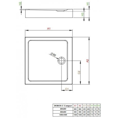 Поддон Huppe Purano прямоугольный 900x900 mm