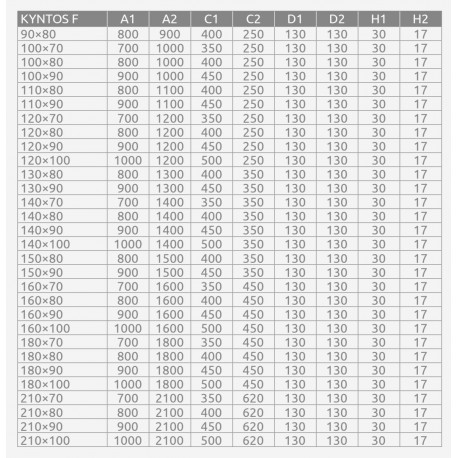 | Поддон для душевых размером до 90x90 см | 15 € | 20 € | 30 € | |