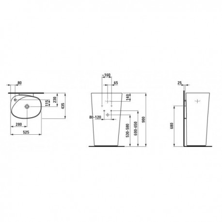 Laufen > Санфаянс > Раковины другие > Palomba > Monolityczna раковина свободностоящая Laufen Palomba пристенная ze zintegrowanym postumentem z 1 otworem 525 x 435 x 900 mm - белая