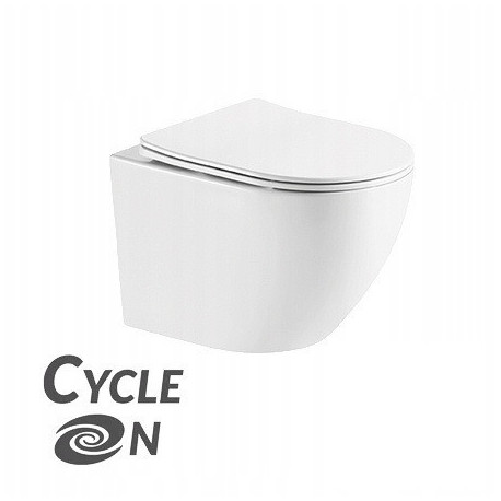 Laveo > Санфаянс > Унитазы подвесные > Desna > Подвесной унитаз Laveo Desna CycleOn 2.0, короткая 49x36 cm, bezkołnierzowa, wirowa с крышкой с микролифтом Slim - белая