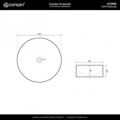 Corsan > Санфаянс > Раковины на пьедестале > Umywalki nablatowe > Накладная раковина Corsan Lugo круглая 35,5x12 cm с заглушкой klik-klak белыйm