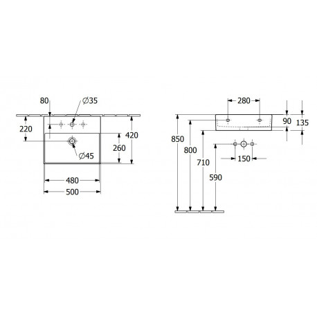 Villeroy & Boch > Санфаянс > Раковины на пьедестале > Memento > Раковина Villeroy&Boch Memento 2.0 прямоугольная 50x42cm, z переливом - белая
