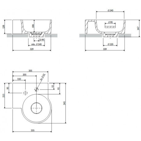 Omnires > Санфаянс > Раковины на пьедестале > Ovo M+ > Накладная раковина/подвесной Omnires Ovo M+, левая, 33 x 34 cm, без перелива - ash grey мат.