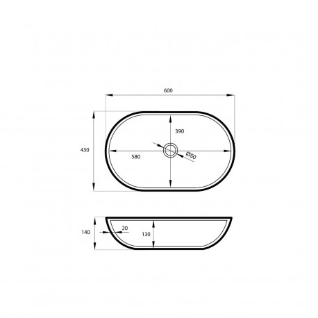 Massi > Санфаянс > Раковины на пьедестале > Umywalki nablatowe > Накладная раковина Massi Doti, овальная, 60x43cm, без перелива, чёрный мат.