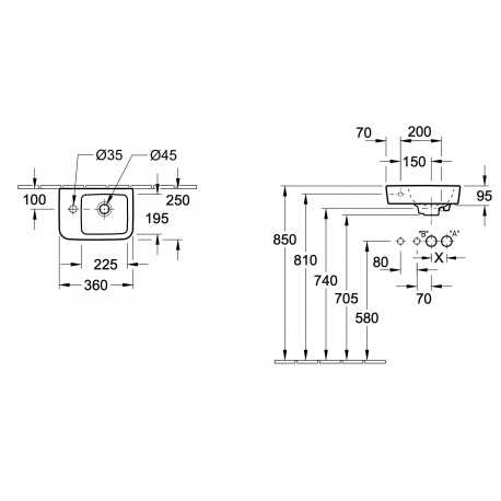 Villeroy & Boch > Санфаянс > Раковины подвесные > O.Novo > Малая раковина подвесная Villeroy&Boch O.novo, 36x25cm, z переливом, отверстие под смеситель, Weiss Alpin