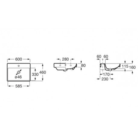 Roca > Санфаянс > Раковины подвесные > Ona > Мини раковина подвесная Roca Ona 60x46 cm FIineceramic, с плёнкой Superglaze - белая