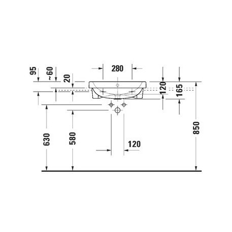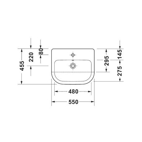 Duravit > Санфаянс > Раковины подвесные > D-Code > Раковина полувстраиваемая Duravit D-Code 55x45,5 cm, с отверстиями под смеситель, z переливом, spód w pełni glazurowany - белая