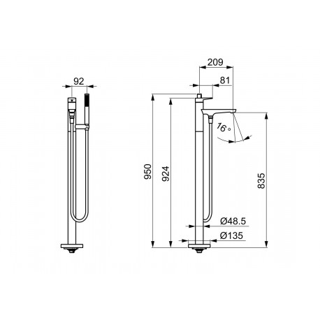 Oras > Сантехника/смесители > Смесители для ванной напольные > HansaGenesis > Смеситель для ванны HansaGenesis с душем, однорычажный, свободностоящая - бронзовое напыление