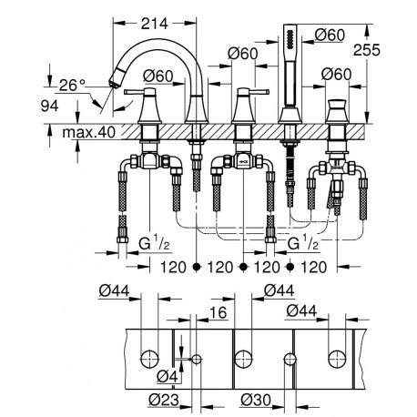 Grohe > Сантехника/смесители > Смесители для ванной на несколько отверс 9 > Grandera > Смеситель для ванны Grohe Grandera pięciootworowa - хром