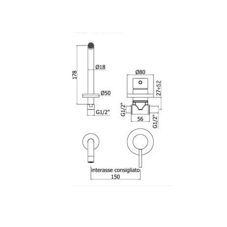 Paffoni > Сантехника/смесители > Смесители для раковины настенные > Light > Смеситель для раковины скрытая Paffoni Light с изливом 18 cm - белый мат.
