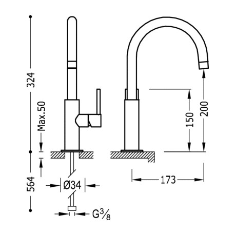 Tres > Сантехника/смесители > Смесители для раковины однорычажные > Study Colors CA, VO, GR > Смеситель для раковины Tres Study Colors z boczną dźwignią, wys. 32,4 cm - золотой cava