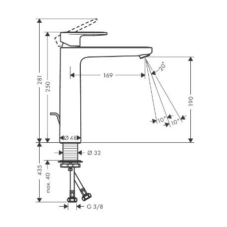 Hansgrohe > Сантехника/смесители > Смесители для раковины однорычажные > Vernis Blend > Смеситель для раковины Hansgrohe Vernis Blend однорычажный 190 с набором слива-перелива с гибкой подводкой - хром