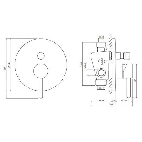 Omnires > Сантехника/смесители > Смесители скрытого монтажа > Y > Смеситель prysznicowo-для ванны скрытая, Omnires Y - Латунь хромированная