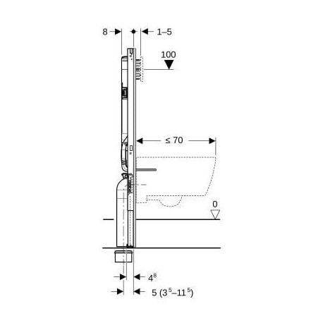 Geberit > Инсталляции скрытые > Смывные бочки на гипсокартонной перегор 86 > Duofix > Стеллаж podtynowy Geberit Duofix Sigma 8 cm, H114 cm, для чаши унитаза wiszącej