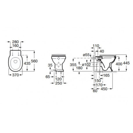 Roca > Санфаянс > Унитазы напольные > Carmen > Раковина WC Roca Carmen напольный 37x56 cm o/двойной - белая