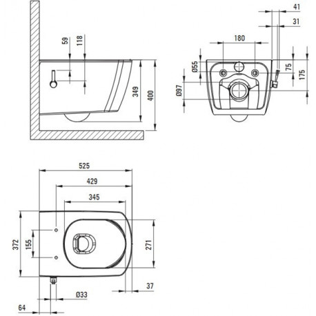 Deante > Санфаянс > Унитазы подвесные > Blur > Раковина WC Deante Blur 52,5 x 37,2 cm, z funkcją bidetu, со смесителем mieszaczową nero - белая