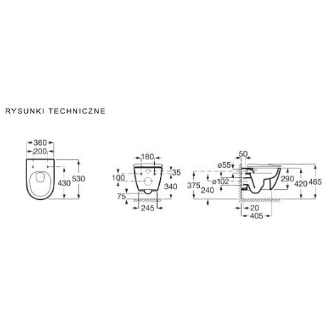 Roca > Санфаянс > Унитазы подвесные > Ona > Раковина WC подвесная, Roca Ona 36x53 cm, Rimless Vortex - белая