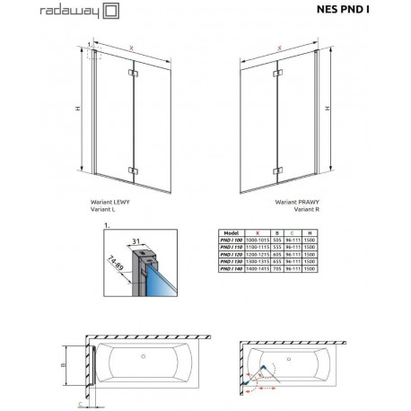 Radaway > Душевые кабины > Шторки для ванны > Nes > Шторки на ванну Radaway nes Brushed Gold PND I 100, правый, раскладная, стекло бесцветное, 100x150cm, profil золотой szczotkowany