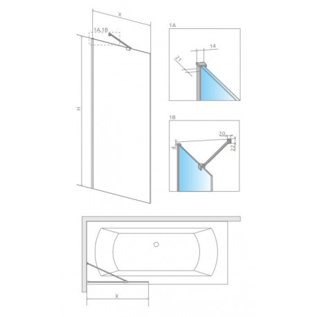 Radaway > Душевые кабины > Шторки для ванны > Modo New Black > Шторки на ванну Radaway Modo New Black PNJ Factory 100, стекло бесцветное, чёрный рисунок, 1000-1010x1500mm, чёрный profil