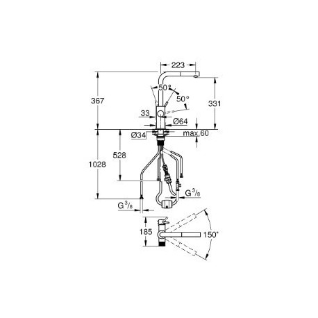 Grohe > Baterie kuchenne > Baterie kuchenne z wyciąganą wylewką > Смесители для кухни > Смеситель кухонный Grohe Blue Pure Minta filtrująca с выдвижным изливом - хром