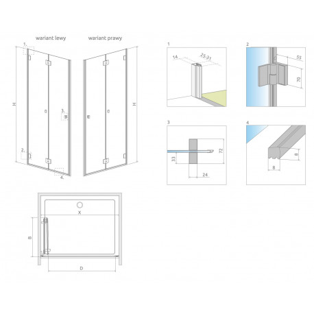 Radaway > Душевые кабины > Drzwi do wnęki > Carena > Двери для душа для ниши Radaway Carena DWB 70, правые, 693-705mm, стекло бесцветное, profil хром