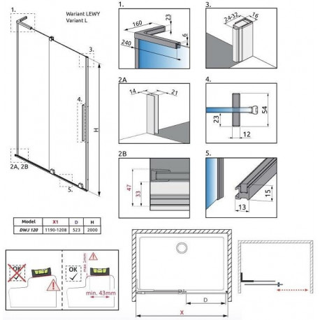 Radaway > Душевые кабины > Drzwi do wnęki > Furo > Двери для душа Radaway Furo SL DWJ 120cm, вариант левосторонний, стекло бесцветное, profil хром глянцевый