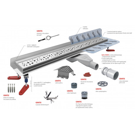 Линейный канал, pełny набор, Wiper New Premium, 500mm, рисунок Ponente, панель / оформление poler