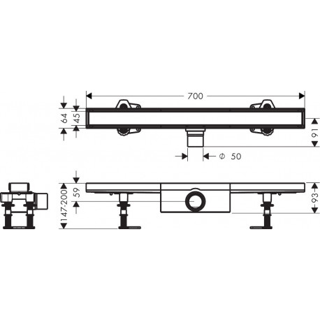 Полный комплект линейный канал Hansgrohe RainDrain Compact 700, решётка do wyłożenia płytkami, standardowy