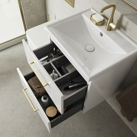 Defra > Мебель для ванны > Szafki pod umywalkę > Faro > Шкафчик для раковины Defra Faro D60 z dwiema szufladami, Ширина 60 cm - lakier белый глянец