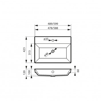 Massi > Санфаянс > Umywalki wpuszczane w blat > Umywalki wpuszczane w blat > Встраиваемая раковина Massi Kerma, прямоугольная, 49x42cm, konglomeratowa, без перелива, белая