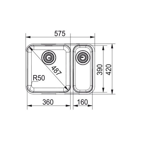 Franke > Кухонные мойки > Zlewozmywaki kuchenne > Zlewozmywaki podblatowe > Zlewozmywak Largo LAX 160-36-16, podblatowy, półtorakomorowy (малая komora с правой stronie), 58x42 cm - нержавеющая сталь